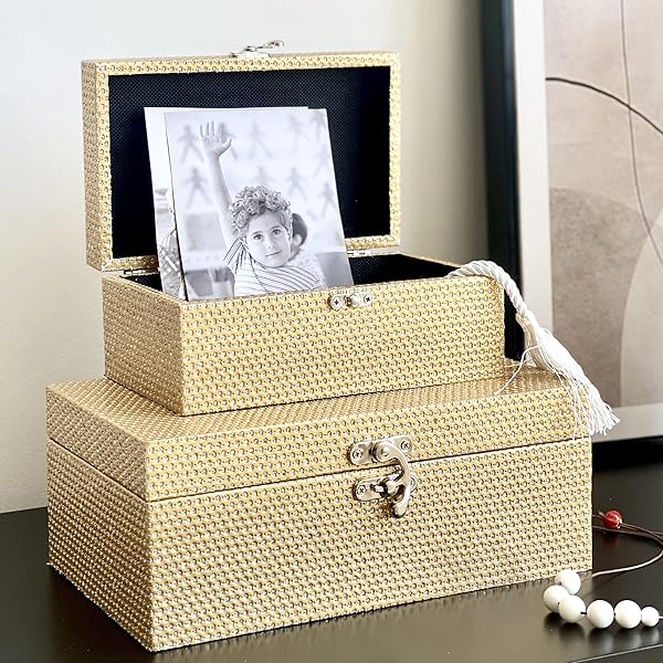 Amazon Com Galt International Jewelry Box Large Jewelry Box Small Jewelry Box Classic Gold Decor Boxes With Silver Opening Clasp Gold Decor For Bedroom And Home Set Of